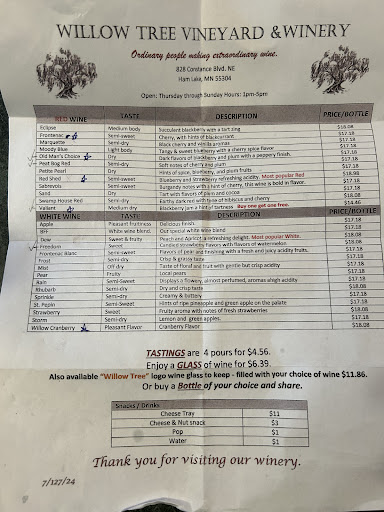 Read moreSweet wines, the first 4 1-2 ounce samples are free. A generous pour glass was $6. Jim is a friendly host. I found most of the wines to be sweet and refreshing, nice for a warm summer day. They give you a cup of oyster crackers to cleanse your palette in between samples and glasses. It was rainy the day I visited making the tasting room a little crowded, nicer weather opens up a lot of seating options on...