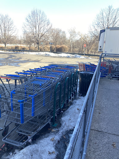 This is NOT a bicycle-friendly plaza! Even though this shopping mall is located directly adjacent to the Farmington Canal Trail, they make no effort to promote shopping here by bike. The picture shows how the one and only bike rack for the entire plaza is treated as extra cart storage, not to mention this bike rack is tucked in the rear of Stop & Shop and is not secure to the ground. The plaza also just reconstructed the curb on the southern end of the parking lot, knowing full well that bicyclists used a break in the curb there to get from the trail to the plaza smoothly. Whoever is running this plaza does not realize the potential that 140,000 trail users per year has for their businesses.
