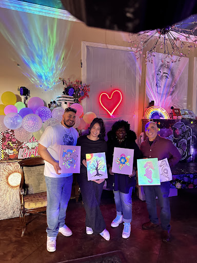In addition, Saima has worked with me to customize two different paint parties for family and friends. One was a hybrid virtual/in-person event, and the other was fully in-person at the Studio. Both events exceeded my expectations! The adult participants had a wonderful time, and we each let our creativity take over, even if we’d never before considered ourselves “artists”….personally, I’ve been amazed at how relaxed and happy I feel at at the end of a painting session.