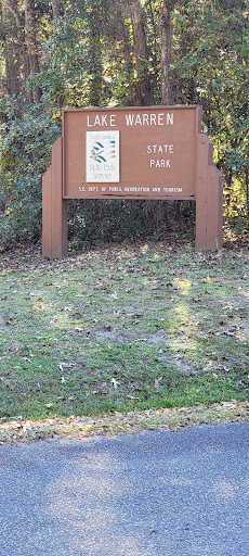A beautiful park. Manicured fields for playing sprawl out from the main parking lot and ranger station. 4 picnic shelters can be booked through the ranger. We visited 2 piers that jut out into beautiful Lake Warren. Lake Warren is a blackwater lake so swimming is not allowed. If you've never seen a blackwater lake I highly recommend a visit here. Ranger is in office from 1100-1200 daily. Several trails for all ages groups. The interpretative trail has many signs about lifecycles and indigenous plants. Nature trail is a short, relatively easy hike. Both have large amounts of roots so be advised of trip hazards and uneven walking. Unfortunately for us bridges on the ends of the interpretative and nature trails were insufficient for the amount of water. The interpretative trail was almost completely blocked but we have received a ton of rain recently. The lily pond overlook is missing some boards and the older part is getting soft. On the flip side, this park is a 10 out of 5 for smell. I don't know if it's the sweet gum trees or the lilies but the entire park smelled wonderful. In our book the park loses half a star for upkeep of bridges and overlook. The park is beautiful and the ranger friendly and helpful. We'll be back and we'll be...