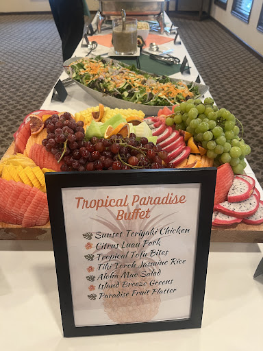 The food was somewhat disappointing. We opted for the salmon and filet mignon combo (necessary to meet the really high catering minimum). The salmon was fairly decent, but several of the guests complained about the filet mignon as being overcooked and flavorless. We had one vegan guest who, for the same $70 as the salmon and filet mignon dishes, received just the side vegetables that went with those dishes. There wasn't anything set up to do a nice vegan meal.