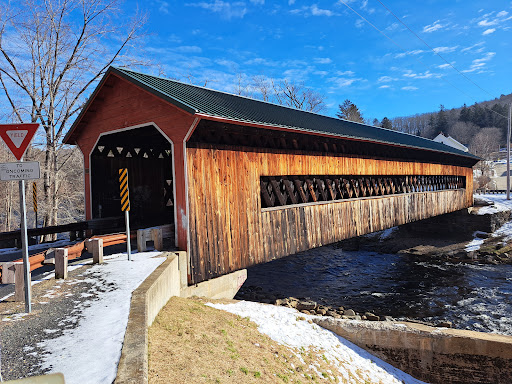 Read moreA charming and modest 137-foot covered bridge built in 1886 linked factories on both sides of the Ware River, as well as the towns of Ware and Hardwick, and ultimately the counties of Hampden and Worcester. These long-closed factories were owned by the George H. Gilbert Company, which made woolen goods.