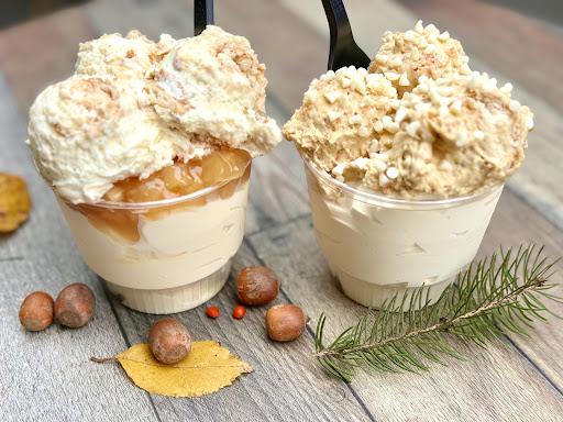 Late with review, but my family ate here last year while visiting for the Harmony fall festival. I’m still dreaming about their sundaes. The apple pie cheesecake sundae with the cloud topping is THE BEST SUNDAE I’VE EVER HAD! My daughter got some type of pumpkin cloud sundae and also loved it and my husband got a melted cookie dough sundae which was super rich but yummy. They also have a really cute garden area in the back with tables and cute lights and a path through the trees to search for fairies. I absolutely love this place. It’s about 40 minutes away from me but I will definitely go back just for this ice cream.