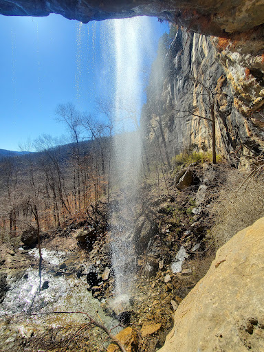 This waterfall is less than 300 ft from Hemmed-In Falls, but most people don't venture around this side. From Hemmed-In there is a bamboo path to the right that is almost vertical and very challenging, but after going around the back side of Hemmed in, continue to follow the bluff base around the corner, and you will come to Diamond Falls, the second tallest in Arkansas. There is an fascinating cave-type formation halfway up the back side of the fall, just watch out for the slick rocks at the bottom. In my opinion, this formation makes it more interesting...