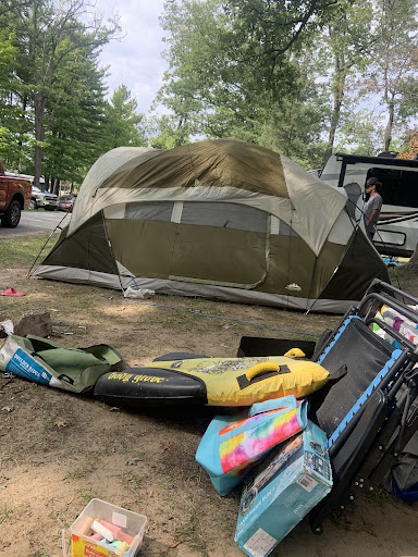 Read moreIts an older state campground with many marure trees. Restrooms are new and grounds are adequately maintained. Sites tend to be uneven (not level) so be prepared to level your rv as needed. Sandy soil helps water dissipate rapidly when it rains. If your new to backing your rv, it may be challenging due to the many trees....but definitely doable. Only draw back is its situated on a busy intersection, which makes it rather noisy. Beach is nice. Park entrance is hard to see due to main sign set back from the road. Entrance is three lanes wide (one out and two in) but really only wide enough for two with larger RV's. Sites are marked on roadway, but its difficult to tell where some sites start and end. Looks like south side camps close after labor day. Lake is small, and not good for bigger boats. Sites 32 ans 34 on north side, are level and good for larger rv, but very noisy due to the road...