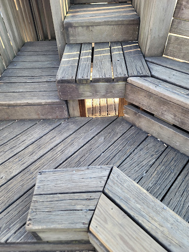 Awesome playground. Kids loved it here. A lot of thought, time and effort was put into this one. Very creatine. I thought it was really cool that there were little hidey hole caves the kids could go into with specific little openings to grab FEET! HA HA HAAAA! Thats always what I do with my kids at playgrounds. I GET FEET! Down side is, my big self could not fit in any of the hidey holes but I still got me some feet 🤣. This playground is built of almost entirely wood except for the slides and monkeybars, swings, some other things. It is rotting out in some places and the next time I go here I will be bringing a hammer. There were quite a few screws and nails sticking out of the structure. Most of which were in inconspicious places. Seems that other people or staff also keep up with this. If you get to running your hands across all the wood, you will find some. It is hard to keep track of where your children are. If you bring more than one, you may want to have 1 adult per child. For those of you who actually WATCH your children like my wife and I do. There is a cool little bridge nearby that goes over a slow river and a little bit of nature. Baseball field that looks like you have to be somebody to use it. I'm not sure and don't care to research it. There are also restrooms on property which we did not use. Overall it was a great little pak. We...