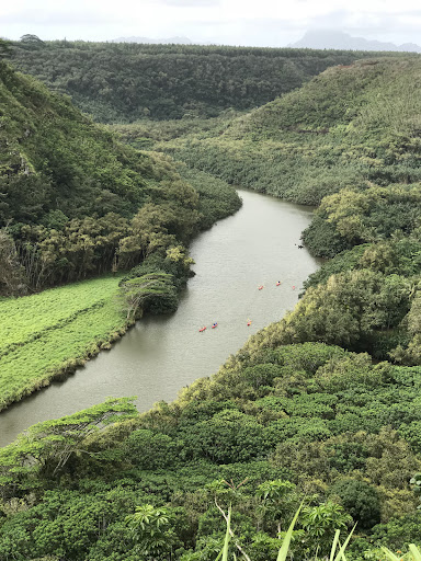 Cross the street and there is a viewing point for the Wailua river. You can often see the kayaks going up and down the river (actual a super fun and easy adventure you...