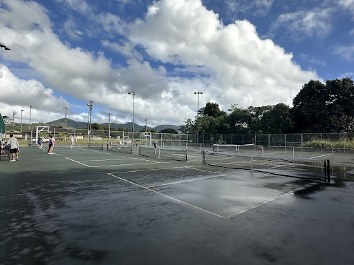 Awesome huge park, Newly renovated- Clean-fenced in safe keiki playground for hours of entertainment for your lil ones(while you read a book, etc :) Three pavilions with "usually" no one in them(birthday parties?!)...kick a ball around in the field, fly a kite in the wide open spaces, frizbee tossing, make your own horseshoe pits!! Possibilities of lots of fun there!! Batting/pitching cages in the back...tennis and bball court, loads of fun for every age, and, yes, bathrooms!...