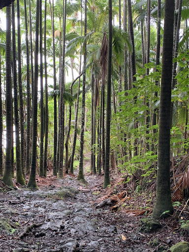 We were here when it was raining so the trail was wet and muddy. At first it’s a bit steep and rocky, and it was an ungroomed trail. You pass beautiful trees and shrubs on your way down to the scenic view of the beach, cliffs, and ocean. Proceed with caution due to falling tree branches and coconuts (there’s a sign). The ground seems to have broken away on cliff side in some areas so watch your step. When you get your fill, head back the same...