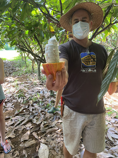 Read moreWe were staying on the farm for a couple of days and also had a privilege to be a part of farm tour Dan and Berndt run on regular basis there. Stay: we had a room with ocean view and were waking up every morning with a killer sunrises which we were enjoying in a comfort of our bed. There is a lot of thought put in the room design, where everything is very nice looking and unique, but at the same time very practical. I really appreciated the personal touch of fresh tropical flowers were put everywhere in the room. The huge palm trunk and some exotic looking plant bouquet made me doubt for a moment if it is real or not, but it was! Décor was beautiful, bed was comfortable, window was huge and i slept like a baby. We had access to the whole farm grounds and enjoyed exploring it (there is a tree house, stream, lots of exotic plants and cacao trees and some ducks hanging around). If we're on the big island again - this is the place i would want to return to Tour: the whole stay was a highlight of our trip, but tour was definitely a cherry on a top. Interactive, where you can not only see cacao fruit growing on the tree, but also taste it and see the whole bean to bar process. Tropical garden is so much more magical when you not only see the plants, but also hear the stories about and behind them. 2.5 hours just flew by. And chocolate tasting at the end! My favorite was chocolate with chai spices from the farm garden.10 out of 5 But most importantly hosts: Dan and Berndt, thank you so much for your hospitality! Special thanks for the bread fruit in fresh form and fries form (sooo good!), tropical nuts taste opportunity and guava hunt trip (even though birds got to it first). Thanks for passion you have for what you do because this is what makes the place unique, magical and very interesting to explore and experience. We really enjoyed getting to know you, to learn about your passion and your journey (those wild pigs!) and just your company in general. I wish you a great success and to find more of those unique chocolate flavors you're experimenting with. Meanwhile we'll have some great chocolate we got home to enjoy, so we can remember our stay and make cloudy Seattle a bit more...