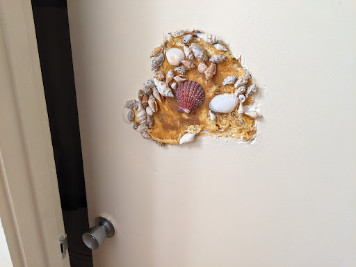 If you look at two of the pictures I added you'll get a feel for what I mean when I say this hotel has not been maintained. The exterior looks old and dirty. They did something monstrous with our room's bathroom door. It looks like someone punched a hole through the door and they filled it with foam only to realize it was really ugly. So they covered it with seashells. PLEASE JUST REPLACE THE DOOR.