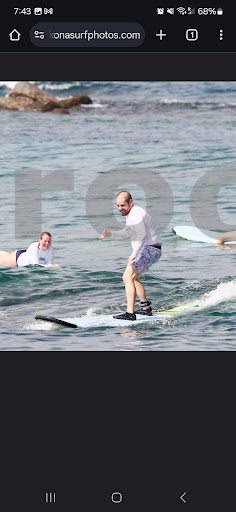 After the dry land, they took the students to the water where they helped them for about an hour to catch some waves. I don't have any surfing experience or know anything about the waves in Kona. It seemed like they had to wait a bit for some decent waves to come, but I think that comes with surfing in general. I believe all of the students were able to get up on their boards and ride at least a few waves.