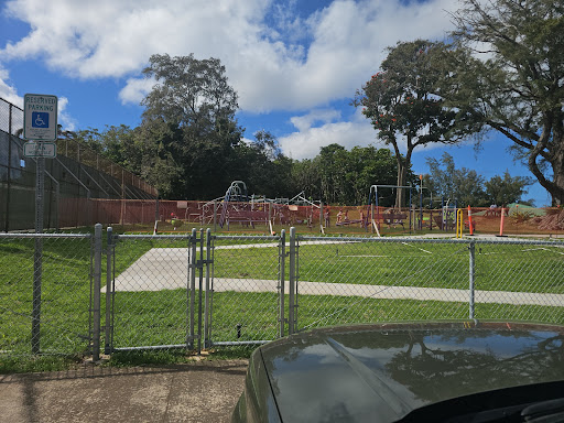 Nice place to stop to burn off energy for the kiddos. However, we got some faulty directions and took us a while to find the actual playground. When you're driving on the left you will see fenced in tennis courts and in front of you the pool. Nestled there in between is a newer playground with a bunch of climbing, swinging and twirly things. It was hiding behind some fence so was hard to see and makes it look like it might be closed, but you just have to walk around the fence. If you get to the skate park you've gone too far. Nice baseball...