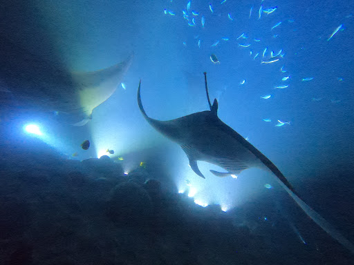 The first dive was enjoyable, and you are not forced to exit the water early as part of the group. Rather you are allowed to dive until you exhaust your air. I found all the gear to be clean and in good condition. The second dive is what many of us were really here for. After about an hour surface interval in which we were provide with deli wraps, drinks and brownies, we proceeded to gather as a group (along with many other groups in the area) around an underwater ācamp fireā. This consisted of a ring of divers surrounding a gathering of several very bright lights which attracted the plankton that subsequently lure in the Manta Rays. We had several large Manta Rays join us for over 45 min, all of which became even more spectacular as the various other groups left and our divemasters moved the bright lights very close to us to encourage more close encounters. After about 45 minutes we proceeded back to the boat. However, we did do little bit of underwater exploring on the way back as opposed to heading straight to the boat which was fun.