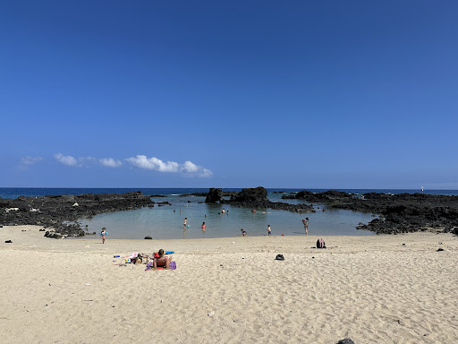 Read moreWe came here on a very windy day with a storm rolling that evening. The protected cove was still quite calm and a safe place for the kids to play. Just have to be cautious not to go out near/past the rocks as the current is very strong. We arrived at the security booth around 9:30am and got one of the parking passes (#23). I think there are 28 total so get there early! The security booth is a short drive down Kukio Nui Drive. They gave us a pass and then directed us to turn around and go right down Aina Kaha Place. From there we had to go through a number of gates to get to the beach parking lot. It was a short 5 minute walk on a paved path (with slow kids) to the beach. The beach is...