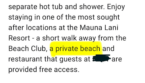 I said that we were told by our property management company that all beaches on the island were public access up to the high tide water line, so what gives them the right to tell us we can’t be there? He then told us the entire sandy part of the beach is private, and if we park a gazillion miles away south, and hike in across the lava field we can access the beach, but only the wet sand and water.