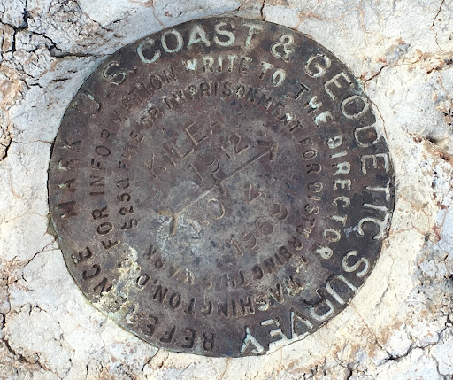We initially thought the petroglyphs were at the top of the hill, so we hiked the lava-gravel road to the top of the hill. However the only item there was a Geodetic Survey Marker. (photo posted)