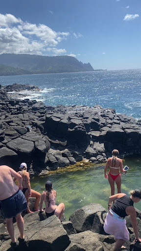Safety : The first part of the hike is very safe, though the path is small. The second half, once you get down onto the lava rocks between the cliff and the coast, if you are with small kids, please keep your eyes on them at all times. The path is wide and safe, but the waves are large and standing on the edge could prove dangerous. Once you get down to the pool that is Queen's bath, be very cautious if you're on the side where the waves hit. A lot of people seem to underestimate how water actually gets into the pool, and I've watched countless people get drenched by waves they weren't expecting to crash in.