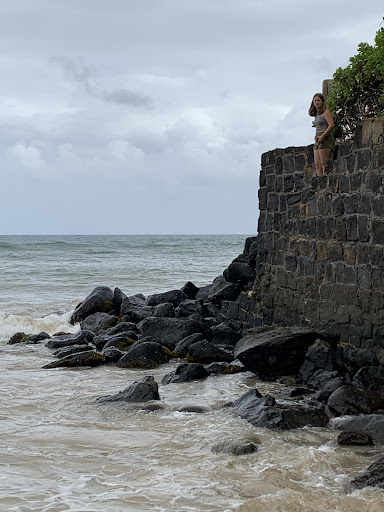 The tide comes up all the way up to the back rocks of the beach at the highest tides, but the rock wall has more than enough spots to stash your bag.