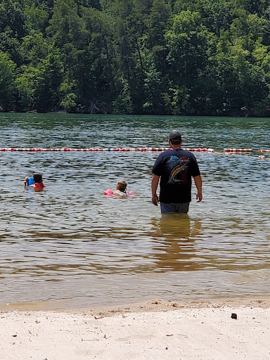 Read moreAdaquet parking , two persons swing set looking over the water, normally has M, W, family restroom and concession but snacks were closed and everyone had to use one bathroom. There is a children's playground, covered seating pavilions. Clean sand , communal open rinse station, the water is rocky in some parts but otherwise did not need water shoes and had no problem walking and standing up in the ropped off area. The view is absolutely breathtaking!! Pano is an absolute must from in the water. Too small for the amount of people around. Frequently visited by creepy dads...