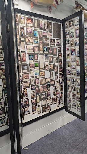 The interior has a LOT going on. There are so many boats, motors, lures, rods, pictures and mounts of record breaking fish. There's tons of history of freshwater fishing, and it does include quite a bit of saltwater fish, as well. There's a section filled to the brim with photographs people sent in over the decades of their catches.