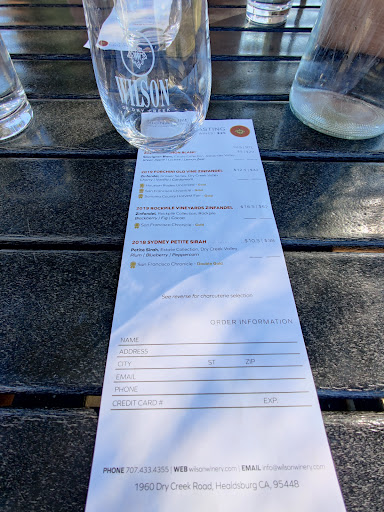 Read moreVisited Wilson Winery back in June solely because my wife's maiden name is Wilson and they have a son with the same first name as her. Looking like we're a couple of 20-somethings despite being in our mid to late thirties, early on the experience was a little impersonal but as we shared our story and why we were there, the staff really opened up and we had some great conversations. The Wilson's son who shares my wife's first name also happened to be in and we got a great picture of two Sawyer Wilsons holding a bottle of Sawyer Zinfandel! We got to try a couple of the Reserve selections and ended up joining the wine club and ordering a mixed case on the spot.