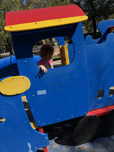 Even though this lovely park wasn’t that far from my home, I had never been before. My Niece and her two young children, ages 5 & 2 were here in Henderson visiting from Arizona this past Sept./Oct. 2019 and the weather was beautiful, so we decided to take the kids to the park. Someone had recommended it to my Stepmom, so off we went. Though the directions were a bit odd, the park itself was great. It’s an 8 acre park nestled in a family friendly area of Green Valley in Henderson. The first thing I noticed was that the playground section for the younger children had a very well padded (rubberized somehow I guess???) floor area, in case anyone took a little spill, instead of like in my day, when it was all rock or cement, OUCH! As you call see by my photos, they had vibrant and colorful and safety minded fun and familiar objects, for the children to climb, slide, crawl, reach, etc. on. The ChooChoo Train was the main focal piece, it had various entrances & exits, a bridge that connected to a slide and so much more. It really help the children build up not only their physical abilities, but also the confidence in themselves. My own Great Niece, only 2 years old, started out being afraid to do most everything, but after watching other little one’s at play, and with a little encouragement and help from the Grown -ups in her life that were there, she lost all her fear before long. In fact, she couldn’t get enough of everything and wanted to try something new! The playground also had swing sets and a large tube for crawling through. The young ones also had plenty of room for them to just have fun. The park had plenty of seating, restrooms, shade for getting out of the direct sun and another area for the bigger kids. My Great Nephew, almost 6, got “bored” in the playground area and went over into the other section of the park (with an adult) but I wasn’t able to walk over. I’m sure the rest of the park was just as nice as the section for the youngest kids.