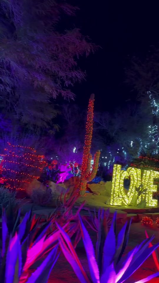 As we strolled through the garden, millions of sparkling lights illuminated the cacti, their vivid colors casting a warm, festive glow across the night. Each corner of the garden had its own charmâsome areas felt whimsical and playful, while others exuded a tranquil beauty, perfect for taking in the seasonâs spirit.
