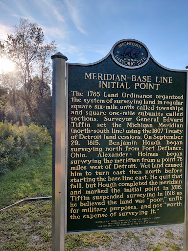It's somewhat hilarious this place exists, but I'm glad it does. This is a state park that highlights a mistake that was made in Michigan land surveying in 1824. The north-south meridian had been mostly surveyed in 1815, but then two baseline intersections were made in 1824. Properties to the east go by the north intersection; those to the west go by the south. Both points are marked here at this park by markers that resemble the Four Corners. 😀 There is a 1.4 mile round-trip trail to the two meridian-baseline markers. There are no facilities at the park, but there is a dirt lot...