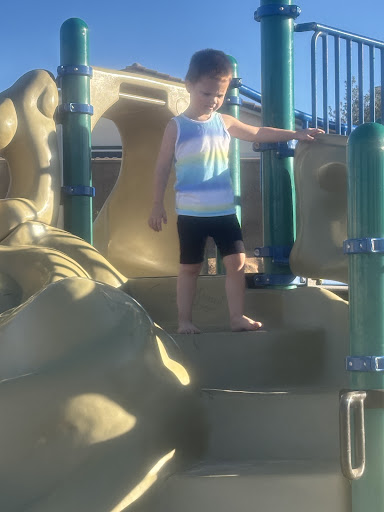 This is a nice park due to it being a newer park and a newer playground. There are many things for kids of all ages to play on. It has a nice covered area with picnic table. My issue with the park is the set-up. It is very close to the street, it is literally park, sidewalk then street. There is nothing to stop kids from chasing a ball or kids playing chase from running into the street. It would be very easy for a child to run in or very close to the street. The picnic tables are in the far corner so if a kid decided to run near the street you can't stop them because you are too far away to get there in time. I have seen groups of parents bring folding chairs and make a human barrier to block kids from going in to the street. The other issue is the baseball field, which is below the playarea has no bathrooms and there's no gate from the field to the play area where the bathrooms are. If you are at the baseball field you have to either walk down and then up the street or get in your car and drive to the park for the bathrooms. It's very inconvenient especially for kids who can't hold it very long. This park would be great if there was more safety between the park and the street and access to the bathrooms...