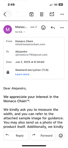 Well after trying everything to explain to the owner that the chain they sent me is the wrong width even after I contacted Monaco themselves and showed her the emails she just said the email is fake and that they are wrong, I ordered a 13.5mm width chain and they sent me a 11.5mm one but the owner keeps saying that the one they sent me is a 13.5 yet the chain says 11.5 as you can see in the pictures I will post on here. She keeps saying that the lock is 13.5 but that’s in not how you measure the chain I will post the picture I got from Monaco on how you measure it and again when they ask me to send a picture of the chain I received they confirmed it’s a 11.5mm I would never do business with them again and if you do just make sure they don’t try to cheat you like they did me. Very bad...