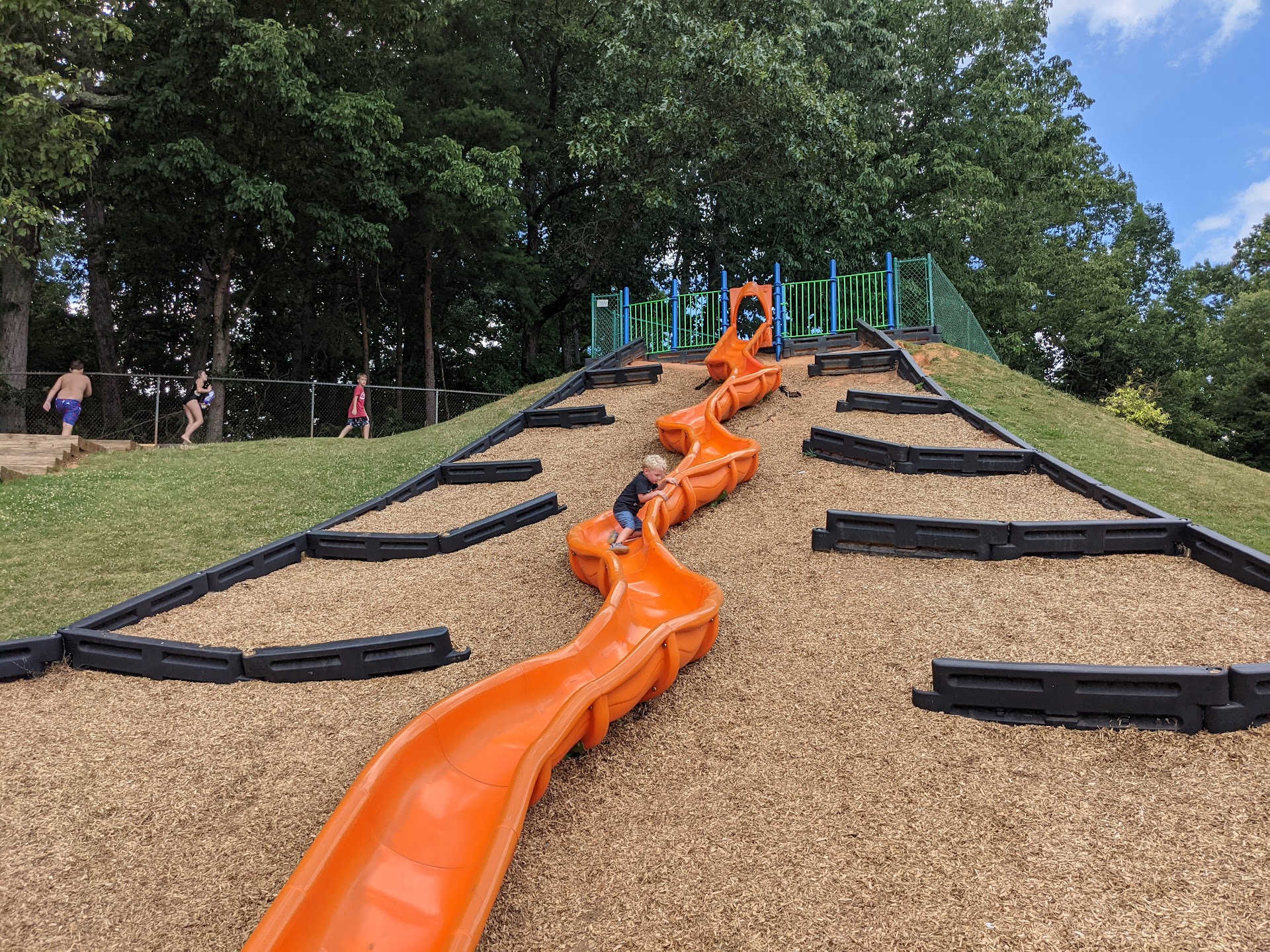 Ā Ā Ā Read moreSlides were busted and broken and they had yellow tape on it but kids were still climbing on it... They should of had it fixed before now before a kid gets hurt plus the rock climbing thing was blocked off with a cloth thing ... I think they need to get more stuff there bc it's just not big enough esp with the stuff that's broken ... Growing up we had metal slides, were they hot yes sir they were but they didn't break or hurt anyone and they were way better u would slide down it no problem u didn't get stuck, my 2 year old kept getting stuck on the long plastic slide now if that thing was metal he would of went down no problem .... N kids wouldn't have to wait for him to figure out what to do bc he...