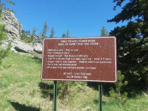 I started at 10am on trail #9 and went all the way up and looped down on trail #4, which gives views of cathedral spires and little devil's tower. I arrived back at the parking area by 3pm. This is strenuous hike and the air is thin near the top. Bring atleast 2 large bottles of water, a hat,enough snacks like chips and granola bars, and sunscreen is a must! You need to be in decent health to do this hike. Make sure to take your time and go slow and steady. The trail is steep at various parts of #9 & #4, and #4 was slightly difficult because the trail intersects with 2 others and there weren't enough trail markers so i amost got lost and had to repeatedly ask others for directions on where they came from. However, black elk trail gets very rocky and quite steep near the peak lookout tower before the stairs. And that's where you really feel the thin air in your lungs and scary heights. I saw little kids ages 5 to 8 doing this trek, along with older folks with dermination. I didn't see any mountain goats, but i saw one family who rode the whole trail on their horses. If you do the entire loop is about 6 to 7 miles and a slow steady pace lasted 5 hrs for me. By the end of it my feet,thighs, and knees were aching and I was exhausted. I did Crow Peak hike and I knew I could do this one. The views are absolutely beautiful and unbelievably astonishing at every moment. Do this and you won't regret the immense sense of...