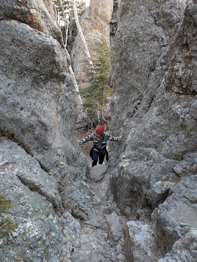 Read moreWonderful hike, parked at Sylvan Lake and hiked to the top of Little Devils Tower. The hike took us about 2-2.5 hours round trip. The trails the 1/2-2/3 of the way are pretty easy but as you get towards the end there is quite a bit of rock scrambling and crevice climbing to get to the top. There are excellent views, including the back of Mt. Rushmore if you know where to look. We went the last week of December so it was pretty chilly at the top, and the sun sets at 4:30 so be sure you allow plenty of time...
