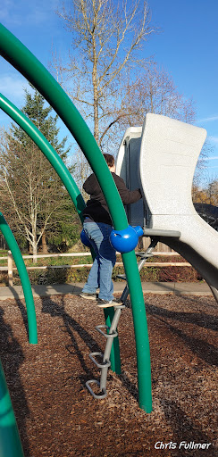 A wonderful playground! It's large and has various elements! Popular with my toddler were the netted, two-story Merry go round, and the rock path up a mini hill. Swings and see-saws and lots of climbing elements! Plus lots of families and everyone lovely!