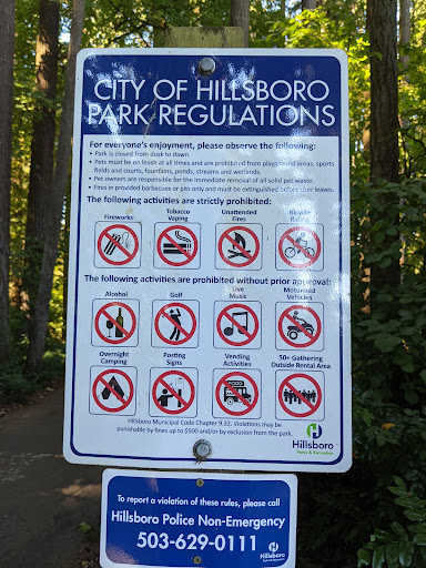 Read moreThis park has a beautifully shaded and wooded, if very short, walking path. There are a couple of dead ends. The main path is paved, which is nice for those with mobility issues. The E Woodland Trail deadends into a neighborhood park with a covered picnic area and bbq. This is mostly open grass and some trees on the outskirts. I really wanted to like this park better. The facts are it's small, sits off of a main, high-traffic throughway and due to this you do not escape the sounds of the city here. There are zooming cars, honking horns, airplaines, barking dogs...all that goes with city life. Likely due to all the disruptive noise, there were no birds to be heard. I prefer large, wooded areas with paths where you forget you're near a city. The main path is just shy of 1.5 miles, round trip, if you stay off the wood chip off shoots and gravel paths which all dead end it appears. The entrance is around a curve in the road, so it sneaks up on you if you've never been here before. My search for a large, densely wooded, wildlife filled, quiet park near the city continues in Washington County. I may never find what I'm looking for but Tualatin Hills Nature Park may be the closest...