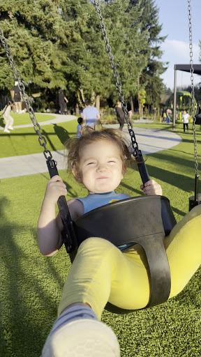 Read moreThis place sure has something for every age group. From the multiple types of swings and twirly rides to the slide you can get to via ramp. Of course the Monkey is the star of the show and has all types of climbing to get up to the big metal enclosed slide. Everything is enclosed in a fence so no kids can make a break for it. Nice new restrooms that are located just outside the fenced part of the park. This park is always packed but more opportunities for the kiddos to make friends :-) The sandpit is where my kid spends most of her time, though the water for it was shut off for the...