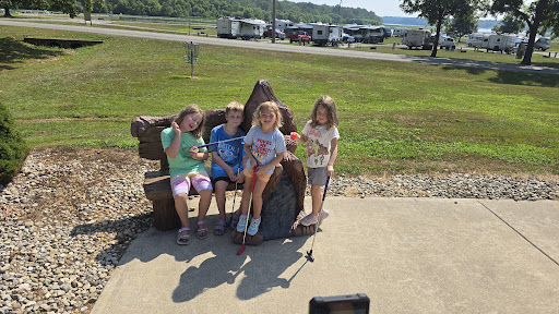 Read moreVery crowded and some campsites are nearly useless with no grass, not even paved pad for an RV. Plenty of muddy deep dangerous ruts, plenty of mud to park in and track in your RV or camper or tent. Many teens, tweens walking the width of the roadway at dusk, nightfall so be extremely careful and drive slow since they won't get off the road due to the mud. It would be extremely helpful to place site #s on a posted sign at the end of each loop. Very confusing layout plus since it's one way traffic becomes time consuming searching each loop for site #. And those are painted on the end of the paved pad, hard to see in the dark. The restrooms and shower rooms, laundry are kept clean. The staff are wonderful. Some of the volunteers, camp hosts for this weekend were not at all wonderful. Playground great for the kids as well as miniature golf. Movie was Tim Burton's Dumbo, crafts were in the morning for the kids. Marina area very nice too. Overall it's a nice place except the blonde camp host and...