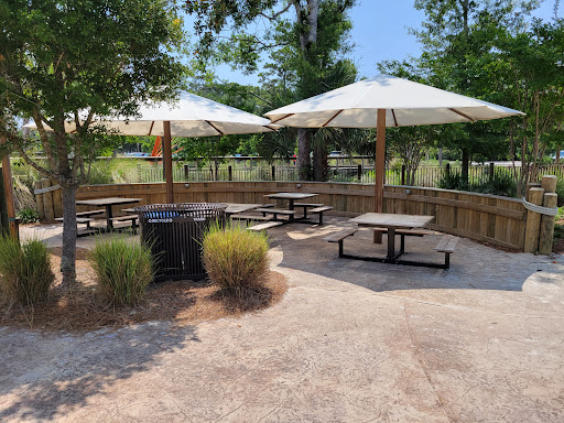 Ā Ā Ā Read moreA beautiful playground we'll be back to! Plenty of free parking, a large, clean bathroom nearby and two individual family bathrooms inside the fully fenced-in playground, picnic tables, benches, a sand pit, a huge climbing ship, swings, a toddler/preschool play structure, a water-river feature, and misting canons make this playground unforgettable! A few things to be aware of: the fake logs, squishy playground surface, and slides get VERY hot in the sun. If you have crawling children or kids who have taken shoes off to play in the water, be particularly aware of the...