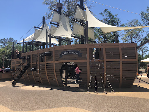 This is our favorite park in HHI! It’s so spacious and has so much to do. The main pirate ship play structure is well made and large enough to offer a variety of play options for lots of children. There is a smaller play structure for 2-5yos as well as swings, a seesaw, and some other play items. The park offers plenty of seating options, both shaded and sunny, including benches, logs, tables, porch swings, and even a seating area with outlets for those who need to bring their work along. On hot days, there is a splash fountain area as well as cannons on the ship that spray a cool mist of water. The park also provides a peaceful water view including some lovely turtles that sun themselves on the banks, and if you’re lucky, you may spot a gator! This is such a great addition to the family friendly island of...