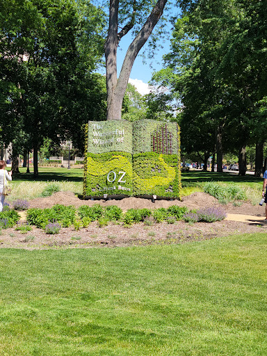 This park is a destination.It is so pleasant my family informed me it will be a stop on our next vacation. Meticulous landscaping and a one of a kind vertical garden that is the Wizard of Oz book. Park is full of black squirrels hoarding acorns.They are accustomed to human presence so they are not shy about continuing their activities while being observed. The library has a used book sale that captured my daughter's and they both came home with a half dozen books for their personal library. Whatever it takes to get them to read. I found a couple paintedcricks that a rock hiding club placed in the flower gardens. This is the kind of place you would be lucky to stumble upon and never forget but nowcthat you've been...