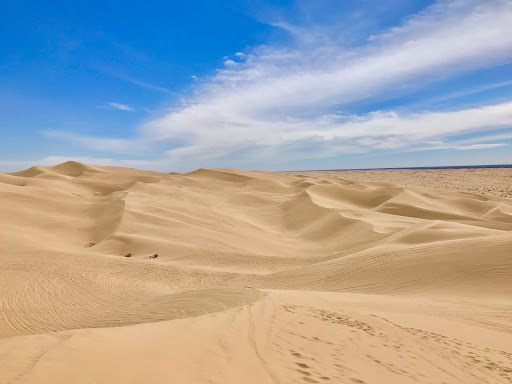 Very cool sand dunes in a spot that you wouldn't necessarily expect them. There are facilities here, and a large parking lot, so RVs will be able to turn around. This spot does a lot, but doesn't do any of it great--probably because it's heavily used. The motorcycle, SxS, utv, and atv crews use this area heavily, so be aware that an afternoon picnic will be be punctuated by the buzzsaw drone of those machines as they jump off of the dunes and do donuts. Sound carries quite far as there's nothing to block or muffle music or conversations, so be cognizant of those around you. A stereo that's cranked may be enjoyable to you, but perhaps not so much for those that are almost a mile away. I love me some Kendrick Lamar, but it's not appropriate for the four year old in the group walking on the next dune over. Because this area is so heavily used, there's also a lot of broken glass and litter scattered around, so although you want to take your shoes off and enjoy the hot sand, be mindful that there may be bottle tops or broken bottles (we picked up numerous). In short, please recognize that this is public land. Please take care of it and respect your neighbors that are...
