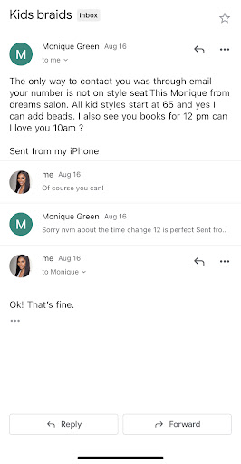 The stylist that did my hair was friendly buy I feel like she rushed doing my sew in. So when she got done I just glanced in the mirror and It look really nice but when I went home and really looked at my hair I could see my closure and 2 of my tracks was hanging smh. I paid 150 plus 80 for a closure I didnt even want but the girl who braided my hair did not braid my hair right but i had a limited time so I just continue with the style. I told her i wasn't satisfied and she was being really rude its not that i wanted my money back I just wanted my hair redone the right way. The staff was friendly and nice but the service was not great or...