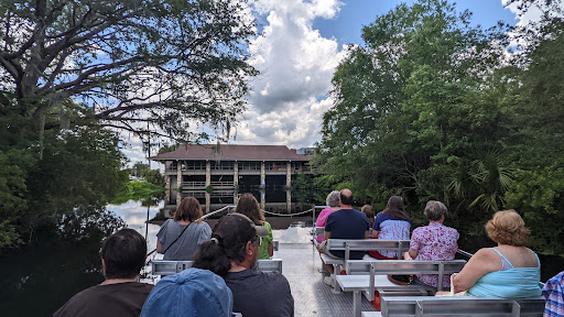 Parking at this entrance means you can choose either a boat ride to the park or a tram ride. The boat leaves on every hour and half hour. But if you miss the boat (or it's full) the tram will take you. After enoying the park today with our nearly 3 year old daughter, we enjoyed the quiet, relaxing, and scenic boat ride back. Unfortunately her hat fell into the water, and she was unconsolable. Once we arrived at the visitor center we let the Captain of the boat know where it was dropped and he radioed the next Captain (they have two boats running simultaneously... I think) to look for it and retrieve it if possible. While we waited inside the cooled visitor center the volunteers there offered us crayons and a bobcat picture for our little one to color. It was very kind of them. They found her hat and brought it to us! We were so impressed with their kindness, and very grateful for their efforts. Thank you! We consider the boat ride especially a major benefit of coming to this state park where you can see mantees (underwater too), a hippo, alligators, deer, otters, a variety of birds and reptiles, as well as...