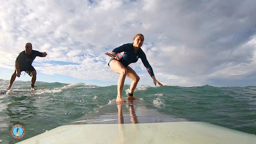 Paulo was skilled in telling us each what to do and when, and I feel that the semi-private lesson provided just the right amount of attention. While one of us was paddling back, the other was getting pushed into a wave.