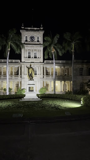 In 1883, a second statue was cast from the original mold and sent to Honolulu, where King Kalakaua dedicated it. With an honor guard and a great ceremony, it was carried by horse team to Ali'iolani Hale, on King Street, where King Kalakaua unveiled it while the Royal Hawaiian Band played "Hawaii Pono'i."