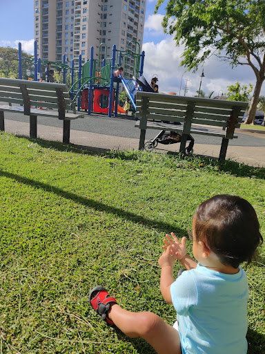 Located at the corner of Queen & Waimanu Streets, the tiny sliver of greenery is towered-over by the gleaming Ko'olani Condos on one side. It looked fairly new as the trees weren't very tall or bushy, so shade is at a premium. The grass was well-maintained and fairly weed-free. There are no comfort facilities, just a few benches and a jungle gym for the kiddos. A Biki bike station is located here too.