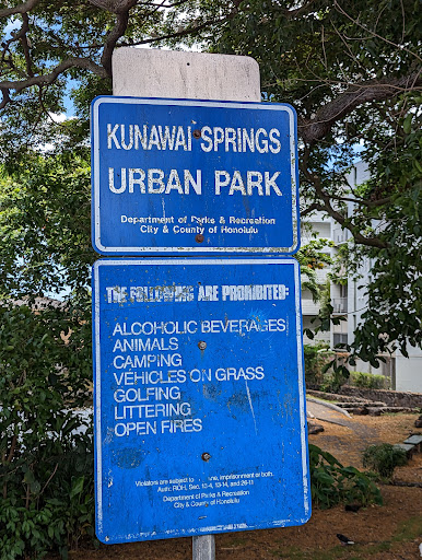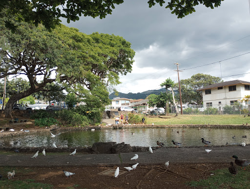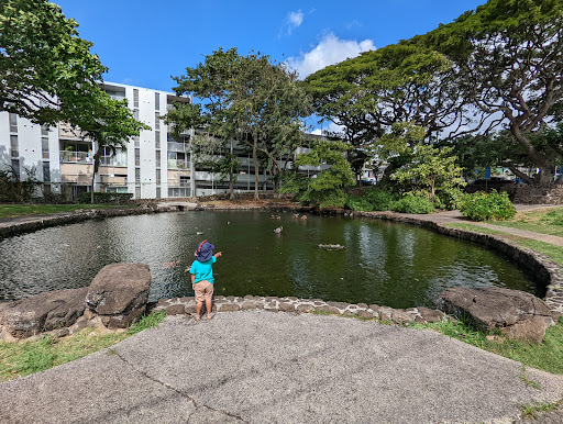 Beautiful little park in the middle of all these buildings and houses, great place to unwind , take the kids to feed fish , ducks, birds, turtles, go across the street and play basketball let the keiki play on the jungle gym or even run in the little field . There Is 1 handicap stall for parking. That's the only problem here is finding parking most times u get lucky , most times it's all taken but no one around in the parks. I'm guessing the stalls are being taken by people living around the area. They really should do something about that. But either way still a nice place...