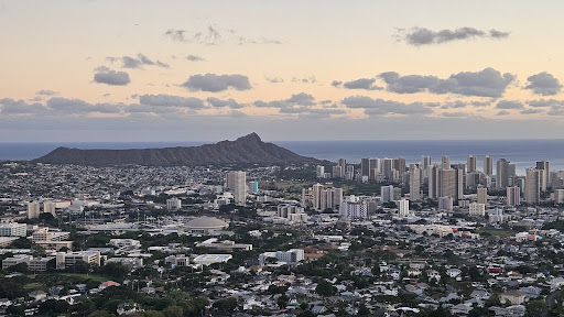 This place came up in Google search when searching for sunset views. I would not recommend coming here at sunset because it's very windy and there is no clear view of the actual sunset from here. You do get a very nice view of Diamondhead and Waikiki below, but based on the angle of the view, you can't see the actual sunset which would be behind the downtown skyline. Also, the drive up to this viewpoint is narrow and windy. Better to come earlier in the day where you can see Diamondhead...
