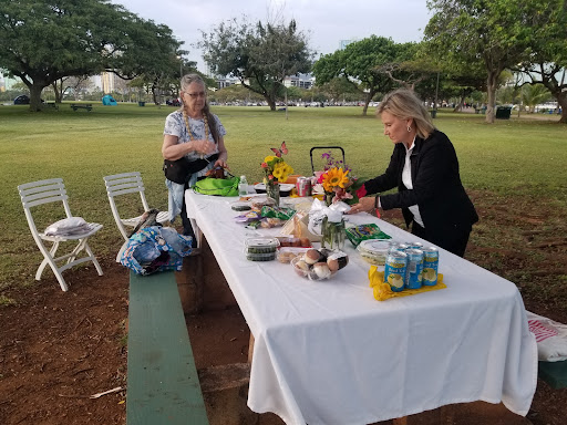 Family and friends find it be a wonderful place to gather, especially on Friday evenings and nights. They bring their prepared food, food boxes, and even grill their meal over burners. And, you must bring along your drinks. While eating, you can see the sun set (and every spectacular sunset is amazingly mesmerizing and unique in it's own, very special breath-taking way). And then, when it finally gets dark, the Hilton Hawaiian Village puts on their popular, spectacular weekly Friday evenings fireworks display. You'll be rewarded for your wait at around 7:45P.M. for the 10-15 minutes aerial display. It's ALL magical GREAT family fun.